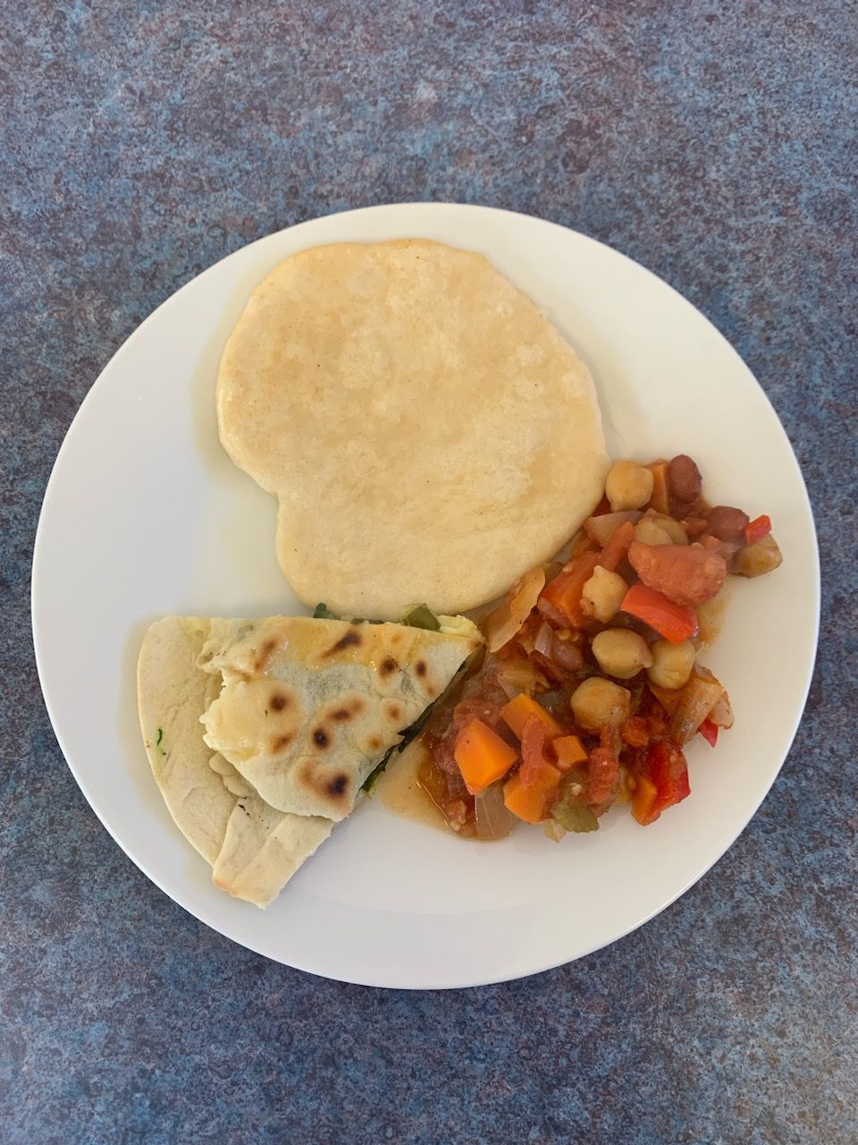We prepared Cheese and Spinach Tortillas, Chilli non Carne with soft tacos and we had Rhubarb and Ricotta turnovers.